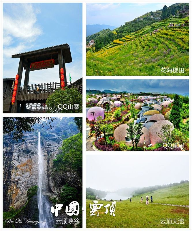 :花海梯田、QQ山寨、云顶大峡谷、QQ蛋居、云顶天池。