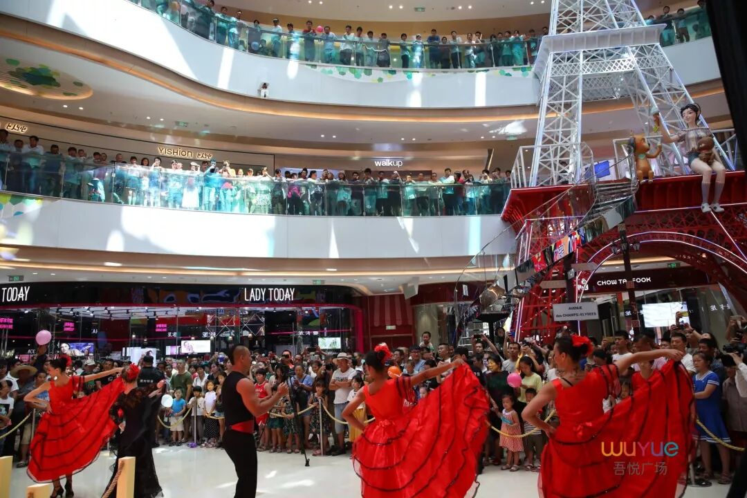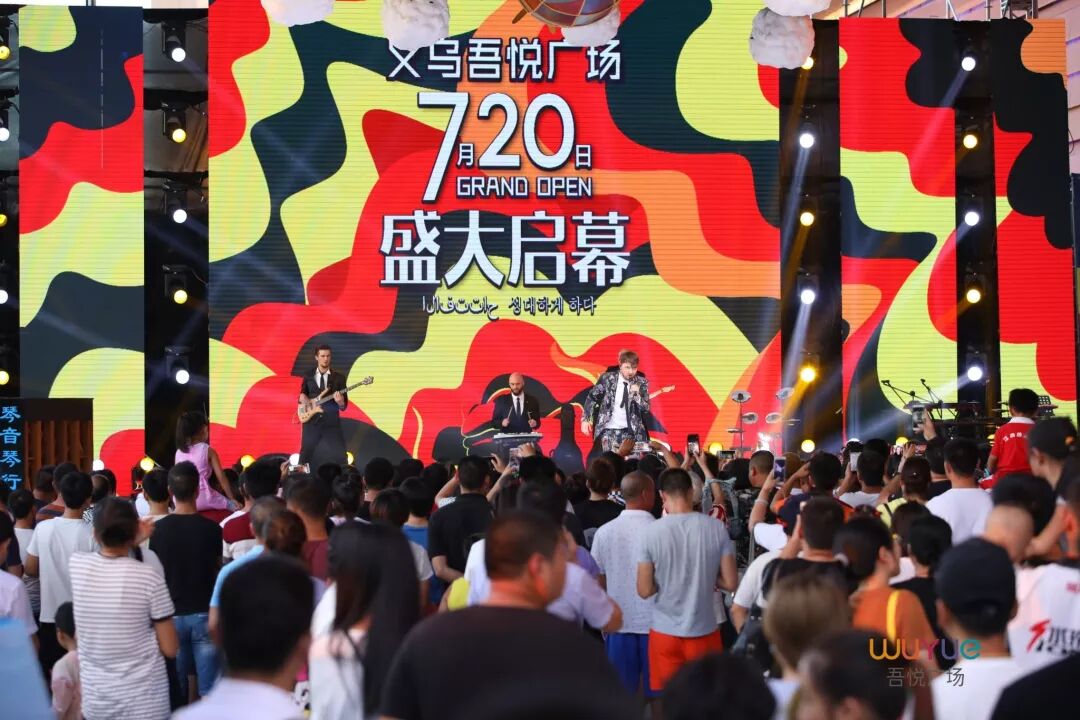 义乌吾悦广场开业当天内外场人群涌动,外广场活动交相互动,鼓乐喧天。所到之处,顾客目不暇接,沉浸在热烈的狂欢盛宴之中。