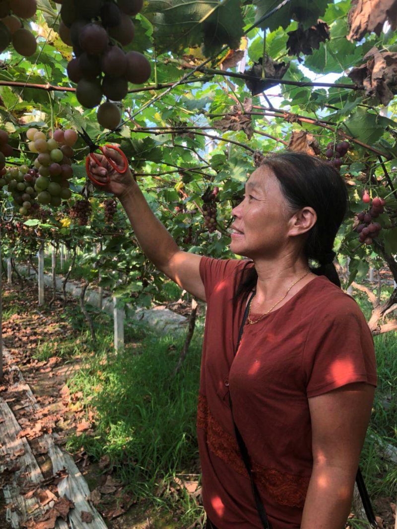 陈菊青在开葡萄园之前在一家工厂上班,因为腿部残疾又离家太远,所以去年跟本身在云南帮别人种植的老公一起商量了下,东拼西凑了26万元在家附近承包了15亩的土地建了一个葡萄园。