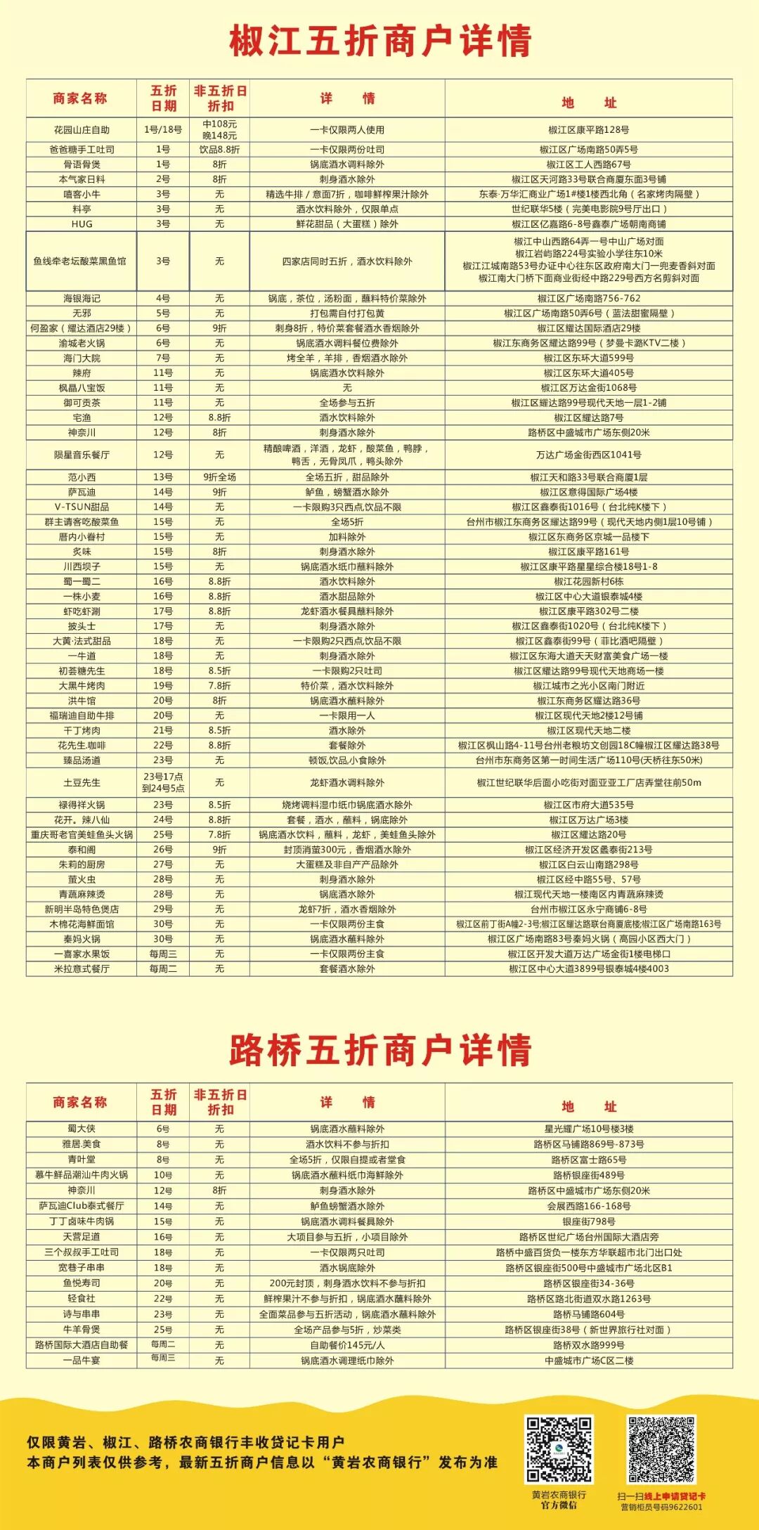 持有黄岩、椒江、路桥农商银行信用卡(通用)